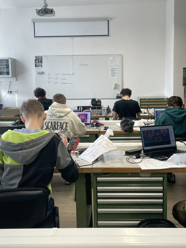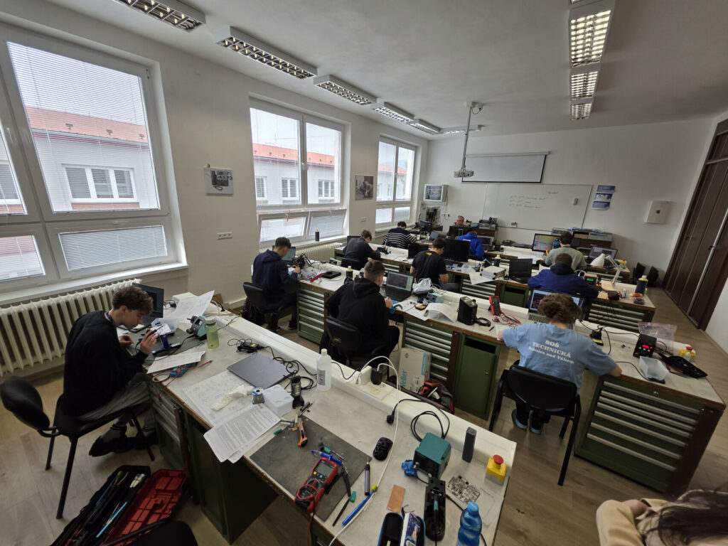 Utorok patril teoretickej časti, ktorá do hĺbky preverila vedomosti účastníkov. Avšak to skutočné napätie prišlo až pri praktickej časti. Tu sa vedomosti museli spojiť so zručnosťou. Či už pri návrhu, zapájaní, ale aj spájkovaní. Na pracovných stoloch sa objavili súčiastky, plošné spoje a meracia technika. Každý krok vyžadoval presnosť, sústredenie a schopnosť zachovať pokoj pod tlakom. Pri hodnotení praktických úloh sa posudzovali štyri kľúčové aspekty: návrh plošného spoja, funkčnosť zapojenia, kvalita spájkovania a čistota vyhotovenia.